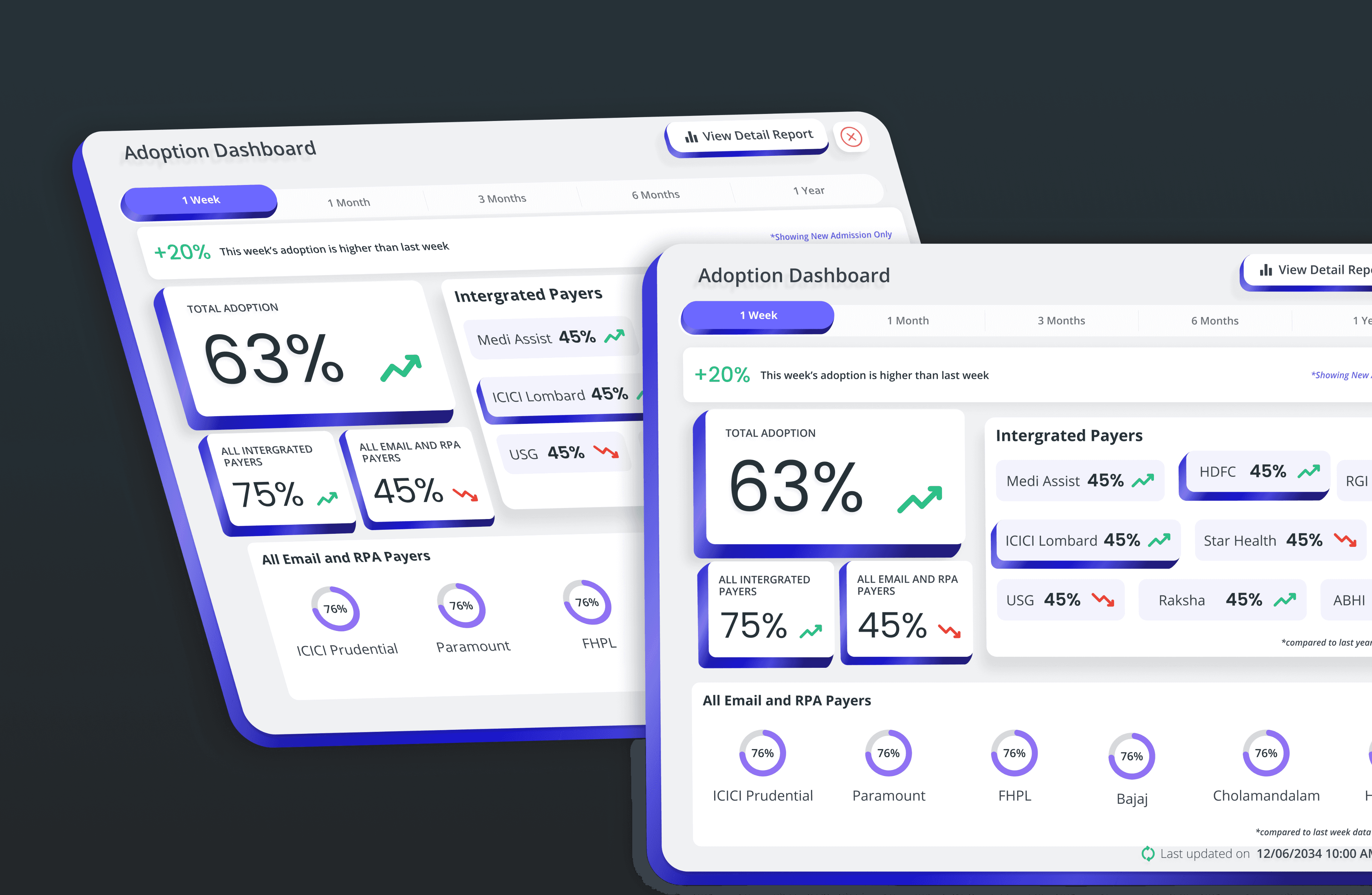 Hospitals only receive weekly reports, leaving them blind to daily adoption. They need real-time visibility and actionable insights to track usage and optimize claim submission.