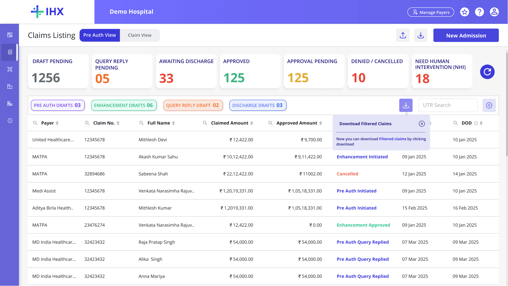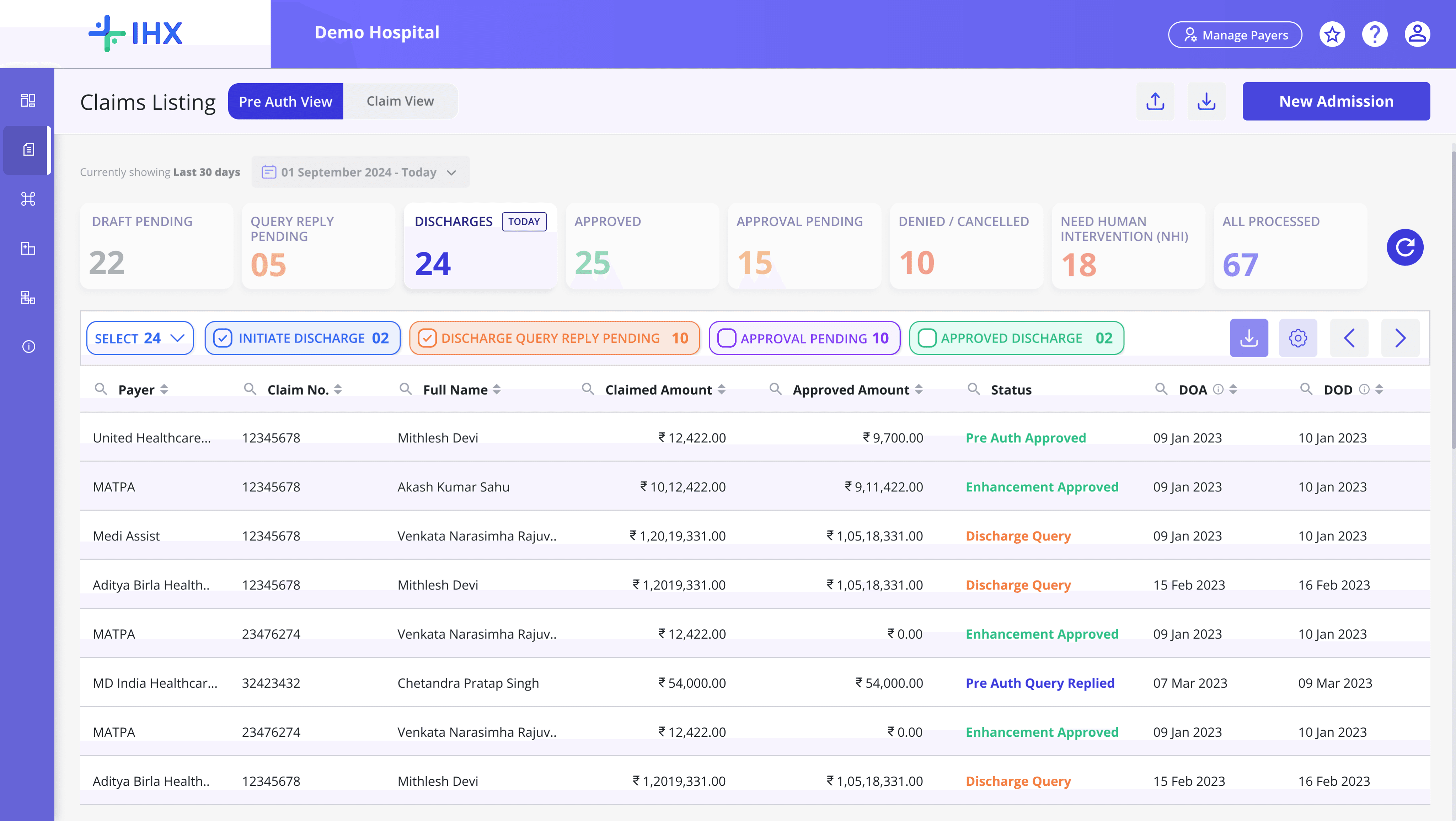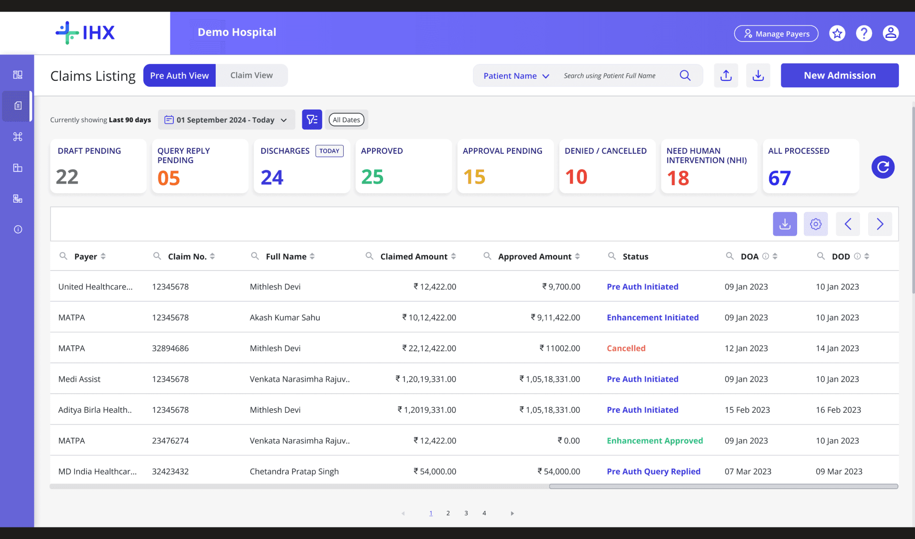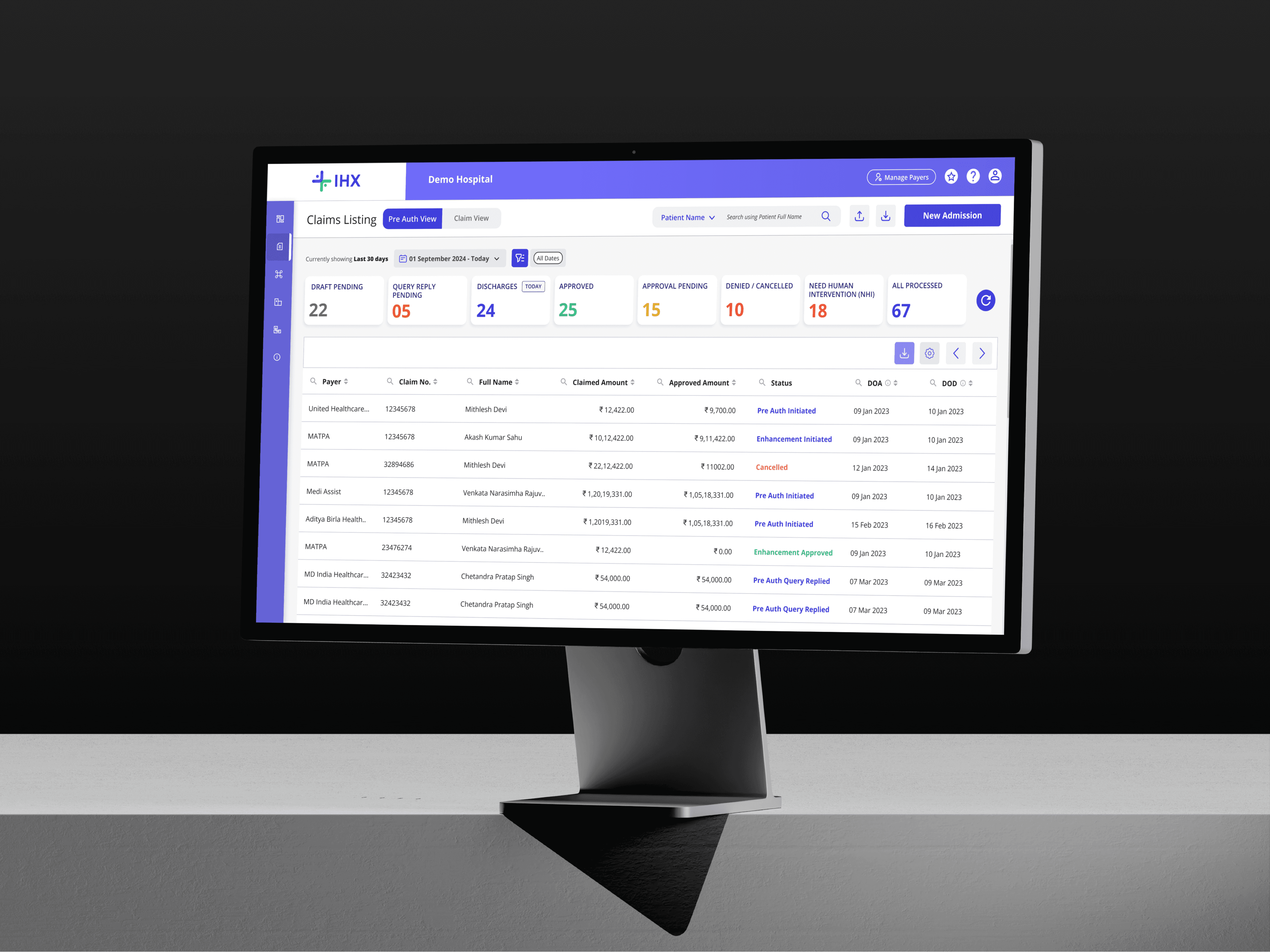 The digital backbone for hospital insurance operations across India. Hospitals manage the full claim lifecycle without logging into 35 different insurer portals.