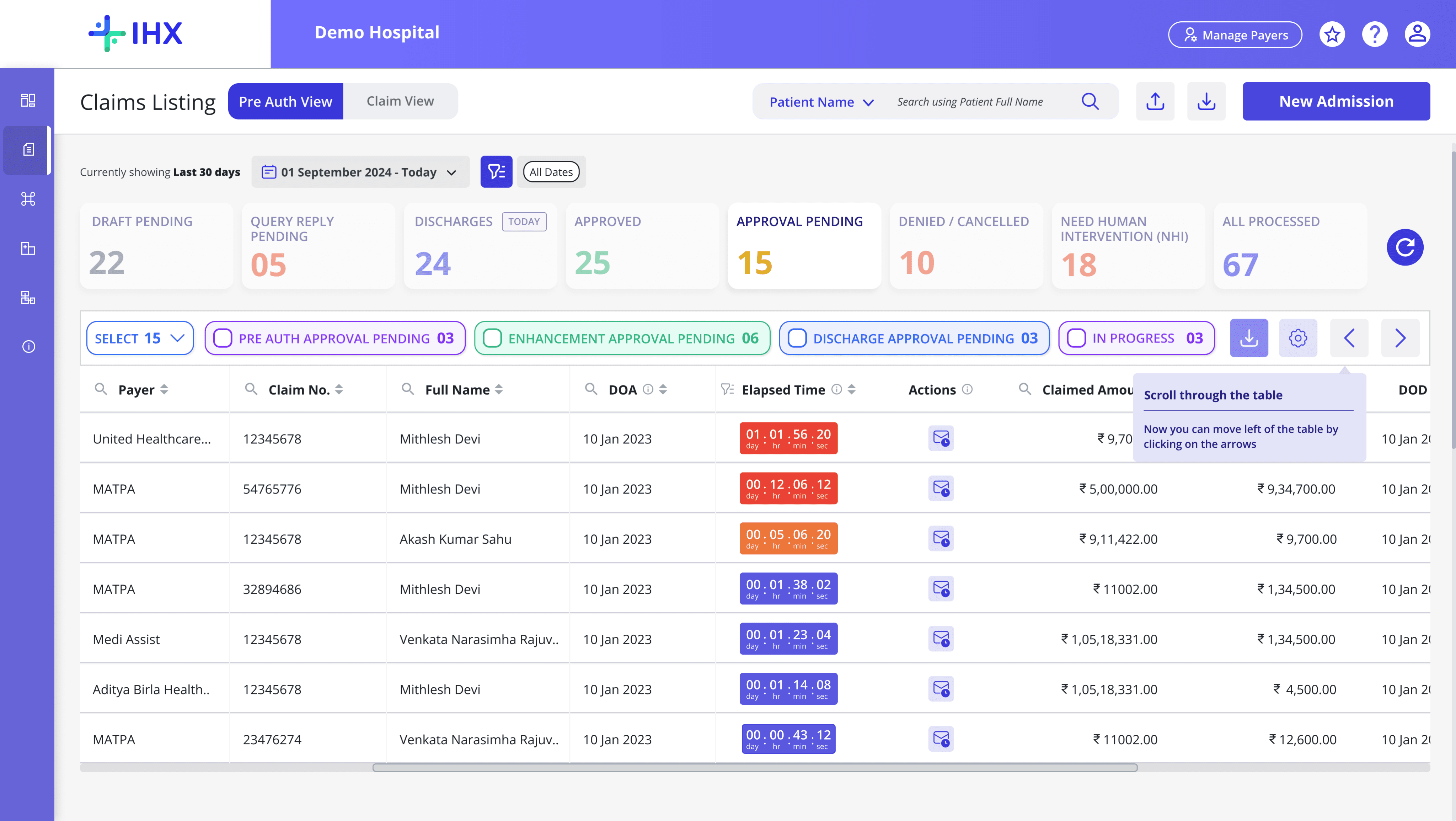 The feature itself was straightforward. The real design work was the configuration layer. A fixed system default would have been wrong for most hospitals — different insurers operate on different timelines, each hospital has its own MOU with each payer. The elapsed time is configurable per payer in Manage Configuration.